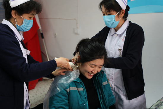 這是黃河三門峽醫(yī)院呼吸科護(hù)士付艷婷邊剪短發(fā),邊和同事的對(duì)話。