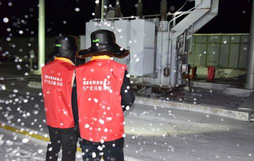 國(guó)網(wǎng)長(zhǎng)春供電公司員工雪中監(jiān)測(cè)變電設(shè)備。