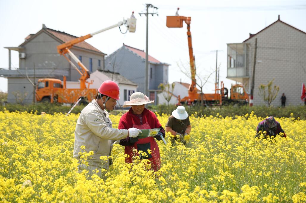 4月9日,在豐樂村開展不停電作業(yè)的長興供電公司,為當?shù)剞r(nóng)民進行用電安全的科普工作