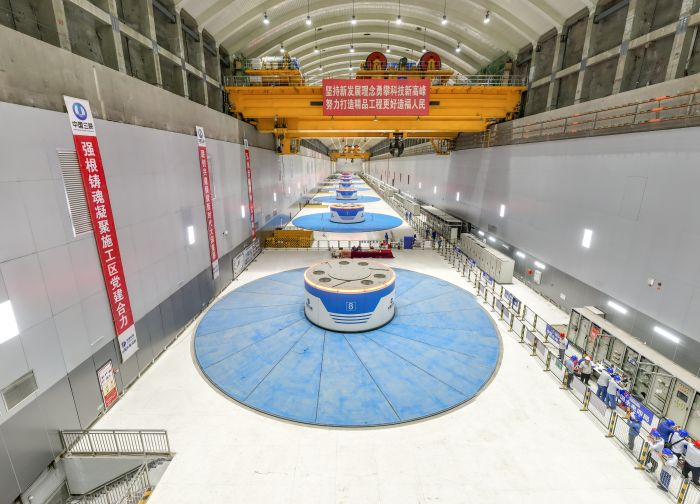 白鶴灘水電站百萬千瓦機組單機容量世界第一,其研制、安裝調(diào)試難度遠(yuǎn)大于世界在建和已投運的任何機組,被譽為當(dāng)今世界水電行業(yè)的“珠穆朗瑪峰”。在機組設(shè)計、生產(chǎn)、安裝過程中,三峽集團(tuán)牽頭聯(lián)合參建各方,提前制定各項措施、方案,嚴(yán)標(biāo)準(zhǔn)、強管理、重落實,通過多措并舉、精益管理、高效施工,掌握了關(guān)鍵核心技術(shù),取得了一個個行業(yè)內(nèi)首次,順利實現(xiàn)百萬千瓦機組順利投產(chǎn)發(fā)電。