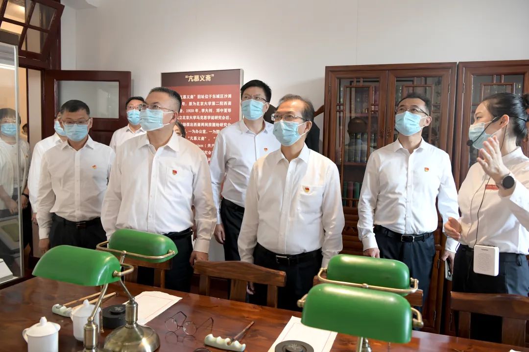 在北大紅樓,江毅帶領(lǐng)黨組理論學(xué)習(xí)中心組成員重溫了入黨誓詞,集體參觀了“光輝偉業(yè) 紅色序章——北大紅樓與中國共產(chǎn)黨早期北京革命活動主題展”,通過一件件革命文物回顧了李大釗、陳獨秀等革命先驅(qū)推動馬克思主義在中國早期傳播、醞釀和籌建中國共產(chǎn)黨的珍貴歷史。
