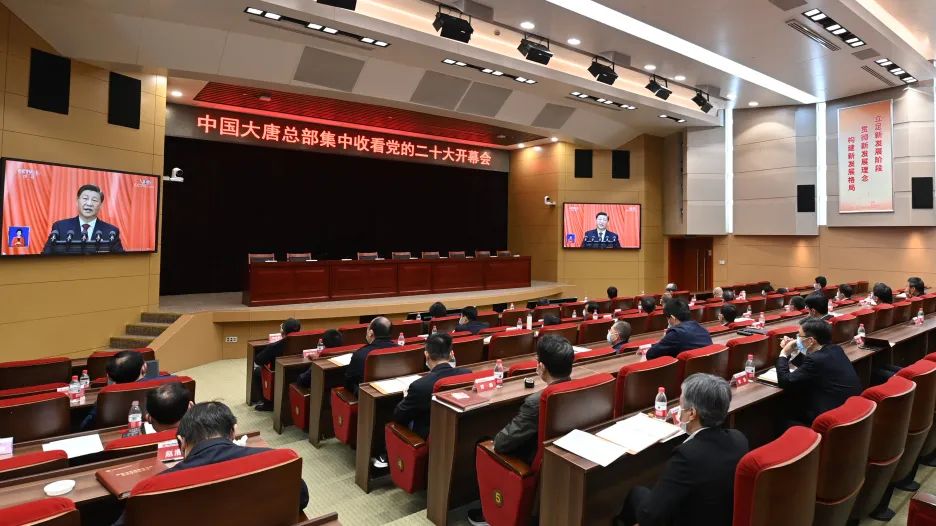 中國大唐黨員干部群眾早早端坐在屏幕前,懷著激動的心情,收聽收看黨的二十大開幕會,認(rèn)真聆聽習(xí)近平總書記所作的報告。集團(tuán)公司領(lǐng)導(dǎo)劉明勝、時家林、王瑛、曲波、張傳江、彭勇、陶云鵬和總部副經(jīng)理級及以上干部分別在總部3個會場,系統(tǒng)31991名黨員干部職工在全國1873個會場集中收看開幕會盛況。