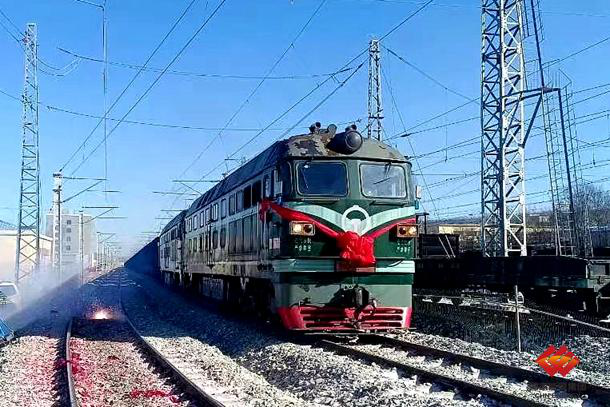 圖為龍王溝專用線首列車試裝發(fā)運(yùn)