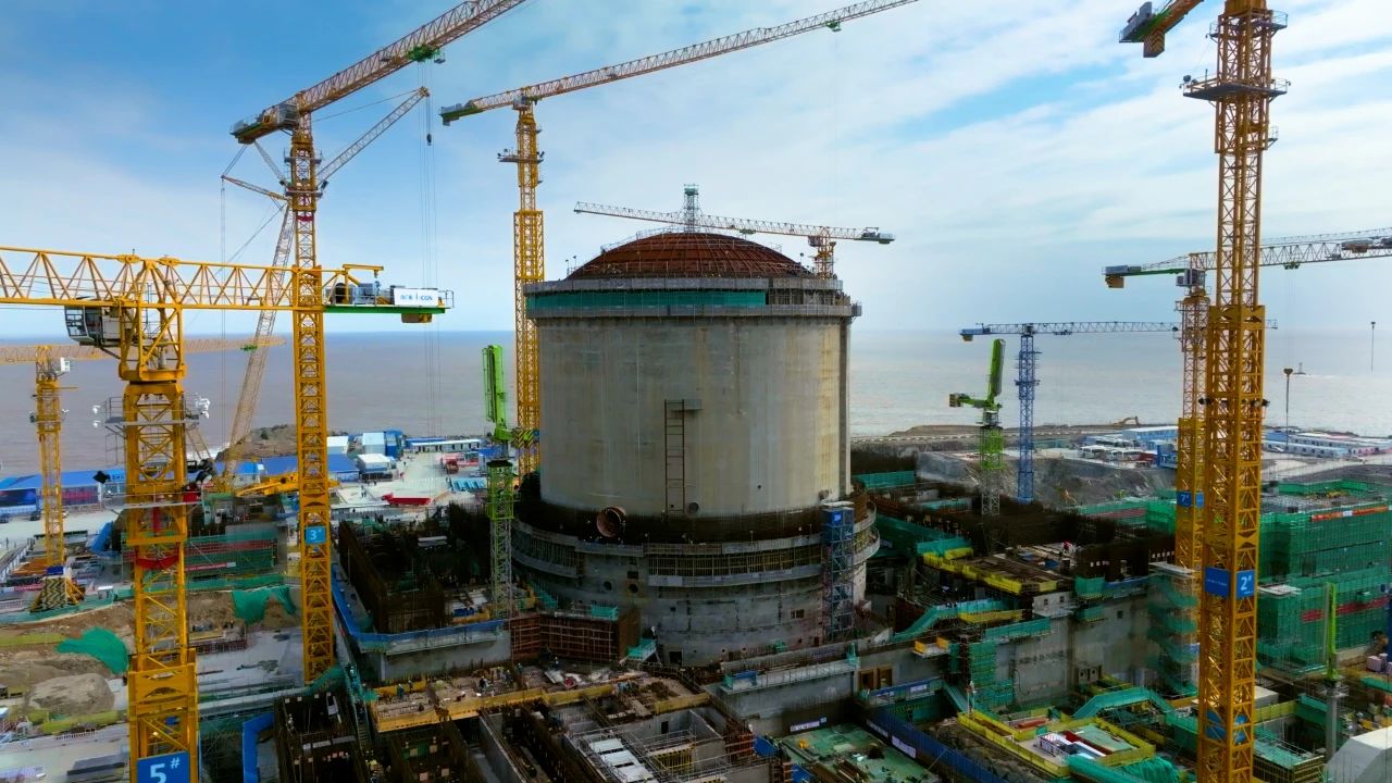目前,浙江三澳核電項(xiàng)目一期工程設(shè)計(jì)基本完成、設(shè)備采購(gòu)?fù)瓿?9%,工程建設(shè)進(jìn)入高峰期。1號(hào)機(jī)組于2022年5月底實(shí)現(xiàn)核島安裝開工,11月3日完成核島穹頂?shù)跹b,從土建施工階段全面轉(zhuǎn)入設(shè)備安裝階段。目前,土建方面,正開展核島內(nèi)殼環(huán)梁D1層、外殼第9層、常規(guī)島汽輪機(jī)廠房施工;設(shè)備安裝方面,正在進(jìn)行支架安裝,逐漸開展設(shè)備引入工作。2號(hào)機(jī)組常規(guī)島、泵站均已正式開工,核島鋼襯里筒體5層焊接完成,正在進(jìn)行內(nèi)殼5層、外殼2層及廊道施工。在工程建設(shè)穩(wěn)步推進(jìn)的同時(shí),項(xiàng)目在組織運(yùn)作、人員準(zhǔn)備、工程參與、技術(shù)準(zhǔn)備等領(lǐng)域重點(diǎn)發(fā)力,責(zé)任前移,高效推進(jìn)生產(chǎn)準(zhǔn)備。