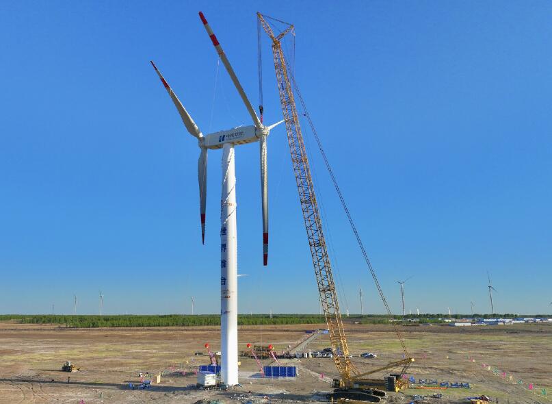 華能自主研制世界首臺(tái)串列式雙風(fēng)輪風(fēng)機(jī)成功吊裝