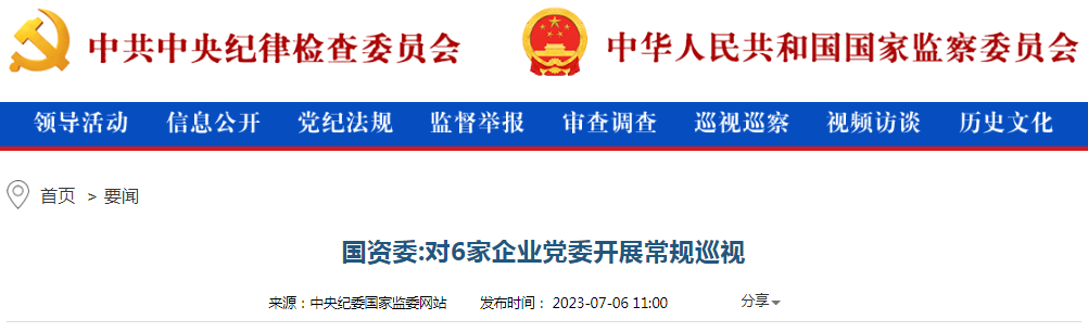 經(jīng)國資委黨委批準(zhǔn),2023年第一輪巡視對中國化學(xué)工程集團(tuán)有限公司、中國鐵路工程集團(tuán)有限公司、中國鐵道建筑集團(tuán)有限公司、中國交通建設(shè)集團(tuán)有限公司、中國電力建設(shè)集團(tuán)有限公司、中國能源建設(shè)集團(tuán)有限公司等6家企業(yè)黨委開展常規(guī)巡視。