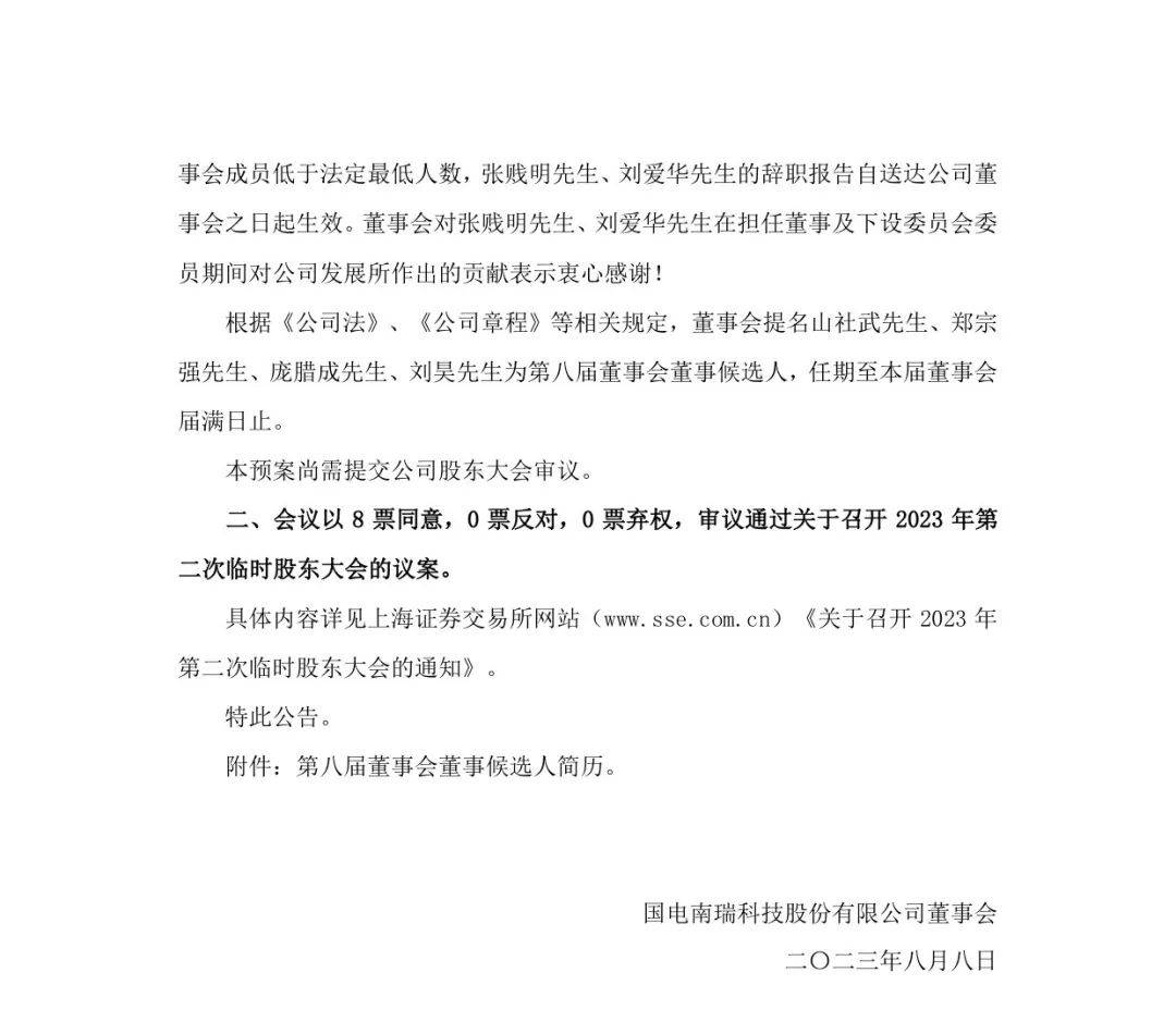 8月8日,國電南瑞科技股份有限公司發(fā)布公告稱,因工作變動,冷俊不再擔(dān)任公司第八屆董事會董事長、董事及董事會戰(zhàn)略委員會召集人等職務(wù) ,但目前仍為公司法定代表人。