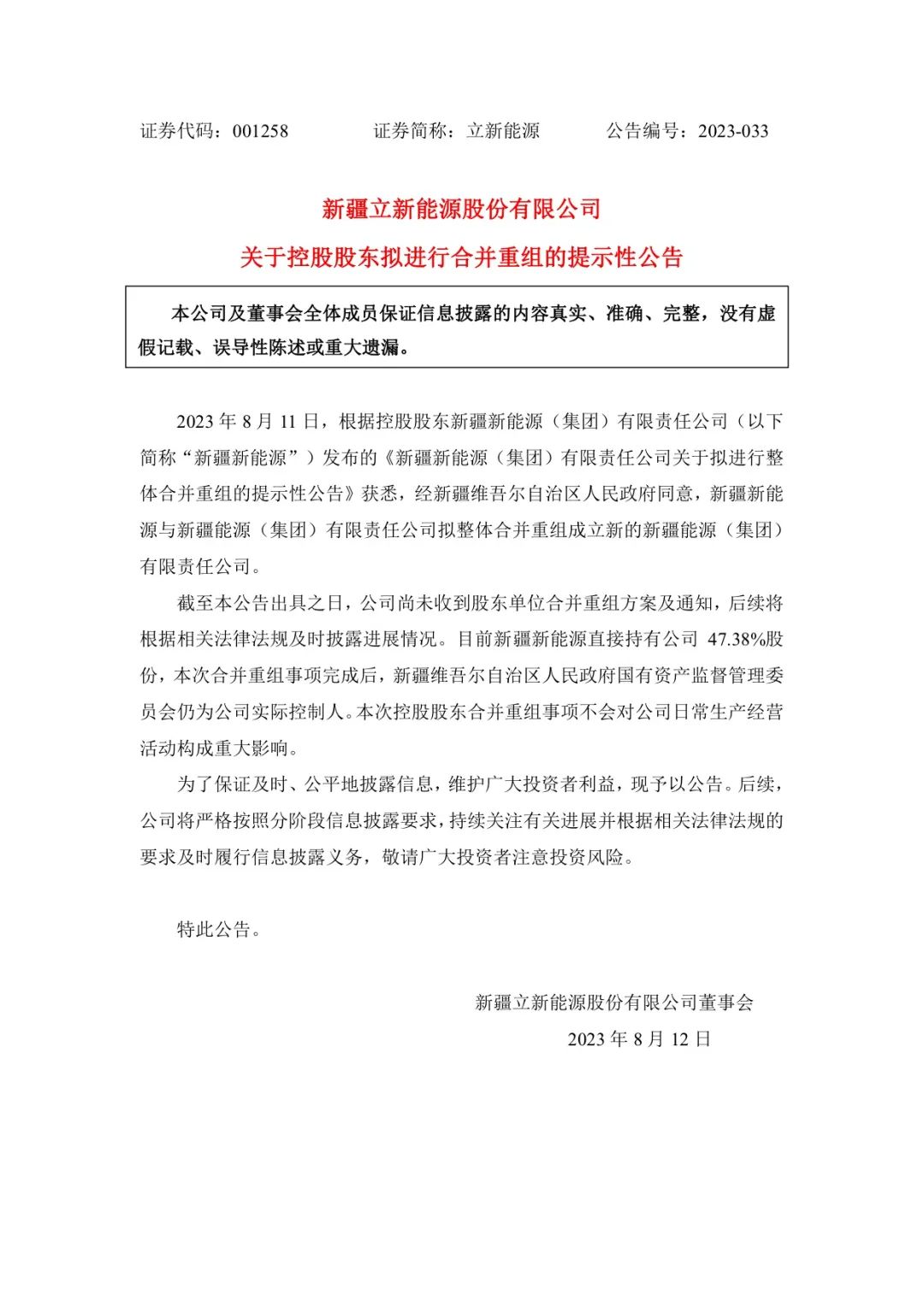 立新能源稱,截至公告出具之日,公司尚未收到股東單位合并重組方案及通知,后續(xù)將根據(jù)相關(guān)法律法規(guī)及時披露進(jìn)展情況。根據(jù)新疆能源(集團(tuán))有限責(zé)任公司消息: