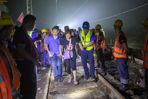 中鐵十四局調(diào)集300余名職工組成7支救援隊,連夜翻山越嶺抵達搶險一線,8月3日凌晨,在峽谷塌方前,組成“人墻”護欄,幫助Z180次列車503名乘客疏散到安全地帶。