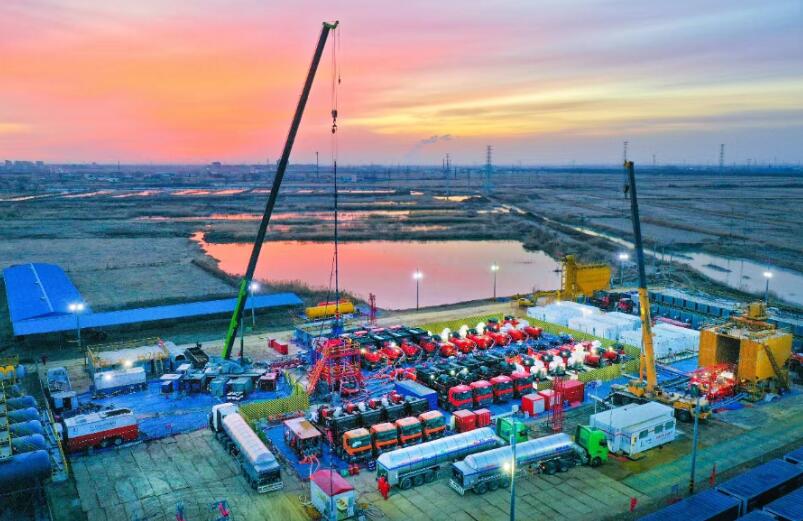 勝利油田牛頁(yè)1-6井壓裂現(xiàn)場(chǎng)。