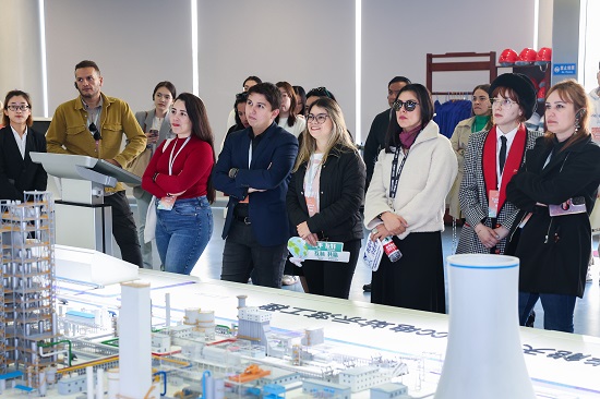拉美記者團(tuán)在電站展廳觀看了宣傳片、模型、展板等,全面了解電站建設(shè)情況及技術(shù)特點(diǎn)。巴西記者朱利安諾·迪普·倫西奧尼對(duì)電站可實(shí)現(xiàn)煤電近零排放表示高度贊嘆,他用“領(lǐng)先”一詞形容IGCC電站。他表示,巴西正在大力推動(dòng)能源轉(zhuǎn)型,與中國(guó)在綠色煤電領(lǐng)域擁有廣闊的合作前景。