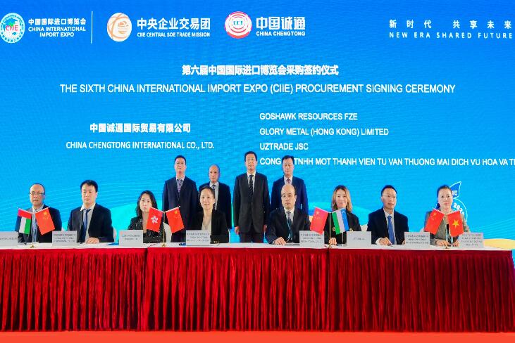 11月7日,中國誠通4家所出資企業(yè)分別與來自阿聯(lián)酋、巴西等14個國家和地區(qū)的28家客商簽署采購協(xié)議。簽約金額合計達18.5億美元,較上屆進博會增長12%,較首屆增長106%。采購產(chǎn)品既有鉻礦、錳礦、煤炭、紙漿、甲醇、棉紗等重要資源型產(chǎn)品,也有如電極、電池裝配設(shè)備等高新技術(shù)產(chǎn)品首次參加簽約。
