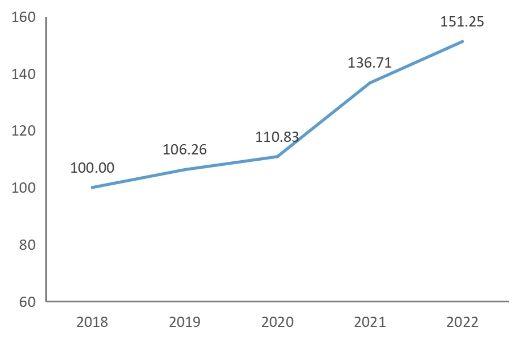 指數(shù)運(yùn)行結(jié)果顯示,2022年,內(nèi)蒙古現(xiàn)代能源經(jīng)濟(jì)發(fā)展指數(shù)達(dá)151.25點(diǎn),同比增長(zhǎng)10.64%。