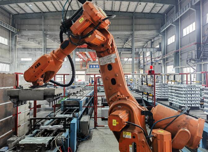 圖為中國五礦所屬株冶新材鑄造鋅合金自動化生產線碼錠機器人