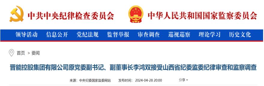 中央紀(jì)委國家監(jiān)委網(wǎng)站4月28日消息,據(jù)山西省紀(jì)委監(jiān)委消息:晉能控股集團有限公司原黨委副書記、副董事長李鴻雙涉嫌嚴(yán)重違紀(jì)違法,目前正接受山西省紀(jì)委監(jiān)委紀(jì)律審查和監(jiān)察調(diào)查。