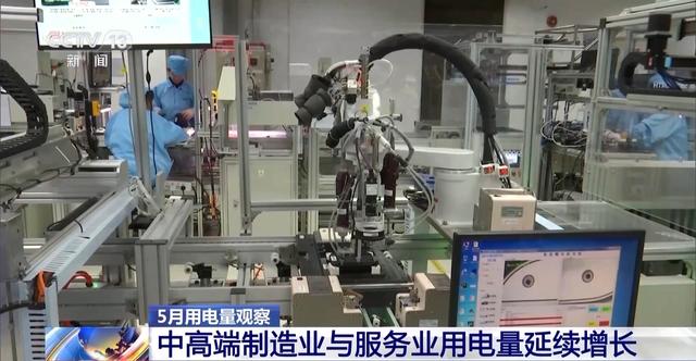 從各地亮眼的用電量數(shù)據(jù)中,記者還發(fā)現(xiàn),今年我國在中高端制造業(yè)與服務(wù)業(yè)的用電量都有顯著的增長,5月份,高技術(shù)及裝備制造業(yè)、服務(wù)業(yè)用電量增長均高于全社會(huì)用電量。