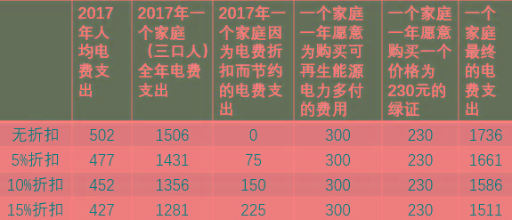 如前所述,愿意一年多支付300元用于購買可再生能源電力的居民大概是332萬人,按照三口之家的規(guī)模估算,這相當(dāng)于100萬個家庭。假設(shè)這些家庭中,在有5%電費折扣的條件下,最終購買綠證的比例僅有5%的話,相當(dāng)于一年有5萬個綠證實現(xiàn)認購。按照一個綠證230元的價格計算,一年可以籌得1150萬元支持可再生能源電力,這已經(jīng)超出了綠證實施近一年來的總交易額。這僅是北京的情況,如果在更多的城市實施這樣的政策,綠證交易所籌得的資金有可能真正起到有效彌補可再生能源發(fā)展基金缺口的作用。