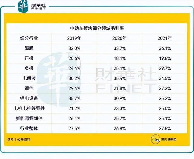 動力電池的成本構成是——正極40%,負極15%,隔膜20%,電解液15%,從成本端來看,隔膜并不是最高的,但是依然選擇恩捷股份(002812.SZ)的原因一是恩捷股份的市占率較高,寡頭效應明顯;二是,隔膜行業(yè)的毛利率較高,如下所示。