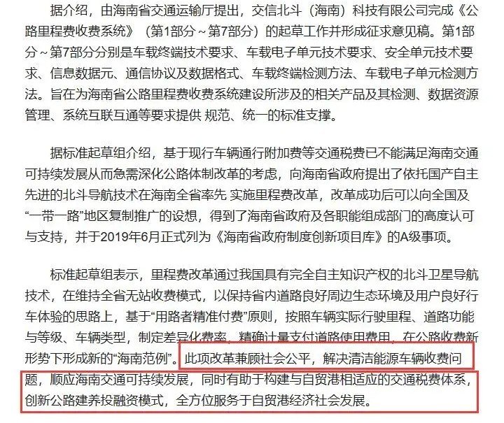 不過某些地方,已經(jīng)做出了積極的嘗試。譬如海南省,在近日出臺了《公路里程費收費系統(tǒng)》的征求意見。意見中,有關(guān)部門將針對新能源汽車“養(yǎng)路費”問題,展開收費模式的改進探索。