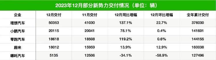 哪吒汽車在2023年12月僅交付5135輛新車,同比下滑34.1%,是當(dāng)月唯一銷量同比下滑的造車新勢力。2023年全年,哪吒汽車共交付新車約12.7萬輛,未能完成此前制定的25萬輛的年度銷售目標(biāo)。