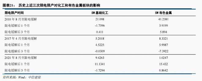限電限產(chǎn)給化工和大宗商品的短期供需關(guān)系造成了直接的影響。在限電限產(chǎn)矛盾較為突出時(shí)段,往往化工和有色金屬板塊出現(xiàn)了明顯的上漲,但在限電緩解后,拉長看,化工和有色金屬板塊均會出現(xiàn)不同程度上的下跌。