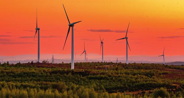 沙漠深處,一塊塊光伏板正被架設(shè)起來,猶如沙地長出一片藍(lán)色的海洋。廣袤草原上,一臺(tái)臺(tái)巨大的風(fēng)力發(fā)電機(jī)巍然林立,近百米長的葉片呼嘯轉(zhuǎn)動(dòng),構(gòu)成一幅壯觀景象。