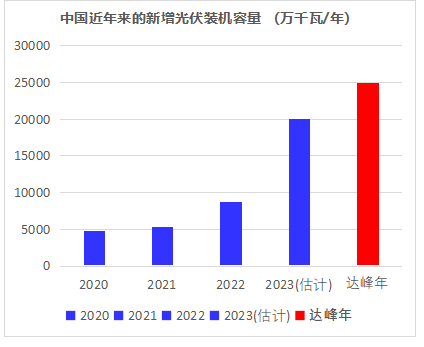 中國光伏發(fā)電新增容量近年來的變化可請參見下圖。