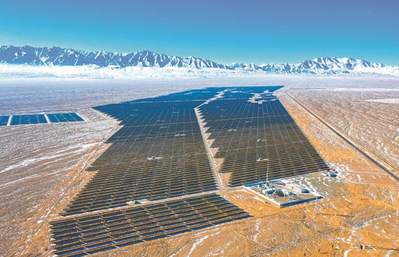 中國(guó)石油玉門油田200兆瓦光伏發(fā)電項(xiàng)目在戈壁之中現(xiàn)“藍(lán)海”。朱俊霖?cái)z