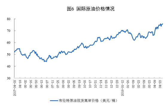 受地緣政治因素影響,原油價(jià)格持續(xù)走高,布倫特原油現(xiàn)貨離岸價(jià)格創(chuàng)下2015年以來最高水平。截至4月30日,價(jià)格為75.92美元/桶,比3月底上漲6.90美元/桶。在此拉動下,國內(nèi)成品油零售價(jià)格也相應(yīng)大幅上調(diào)。