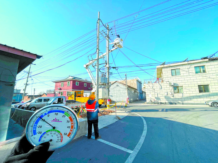 圖② 1月6日,北京平谷供電公司帶電班開展帶電接火作業(yè),保障電力可靠供應(yīng)。黃曉東 張強(qiáng) 攝