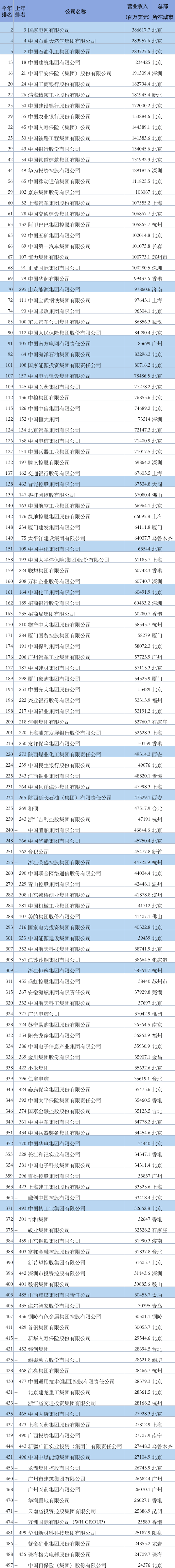 中國(guó)電力網(wǎng)(微信公眾號(hào):China_Power_com_cn)獲悉,8月2日,2021年《財(cái)富》世界500強(qiáng)排行榜發(fā)布。這500家上榜公司在2020年的總營(yíng)業(yè)收入約為31.7萬(wàn)億美元,相當(dāng)于當(dāng)年全球GDP的三分之一。