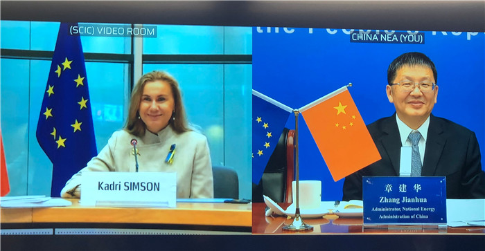 本網(wǎng)訊  3月31日,中國(guó)國(guó)家能源局局長(zhǎng)章建華在北京通過(guò)視頻形式與歐盟能源委員西姆森共同主持召開(kāi)第十次中歐能源對(duì)話。