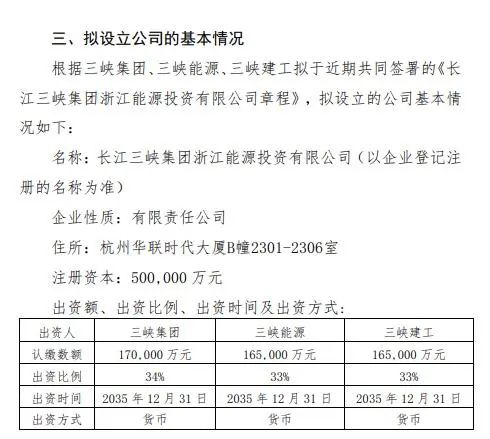 注冊資本50億 三峽集團(tuán)成立一家投資公司