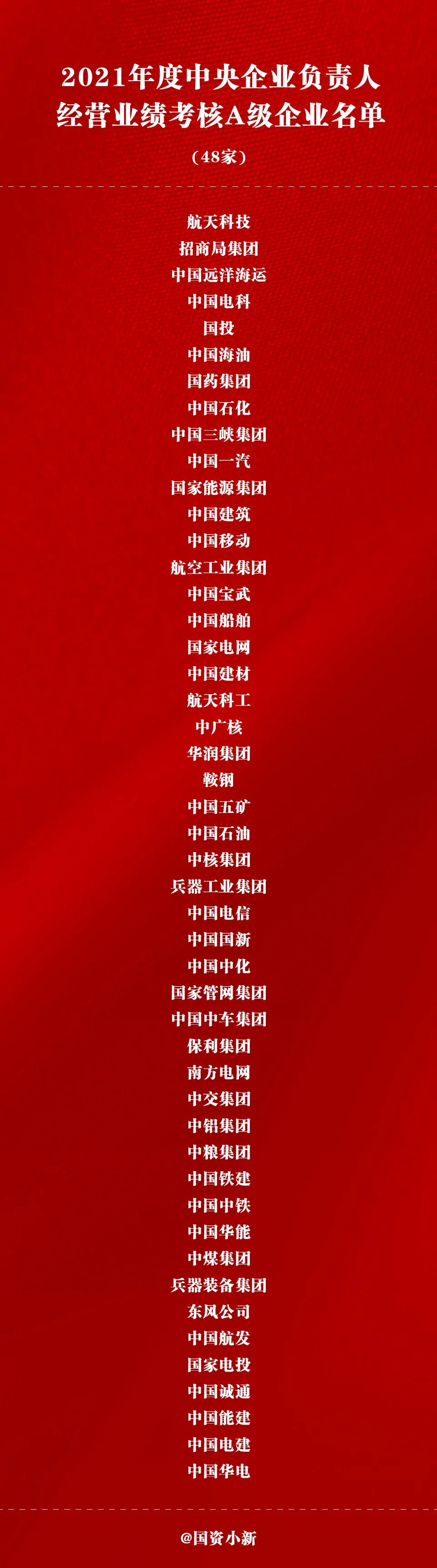 2021年度考核結(jié)果為A級(jí)的企業(yè)48家,2019-2021年任期考核結(jié)果為A級(jí)企業(yè)46家。