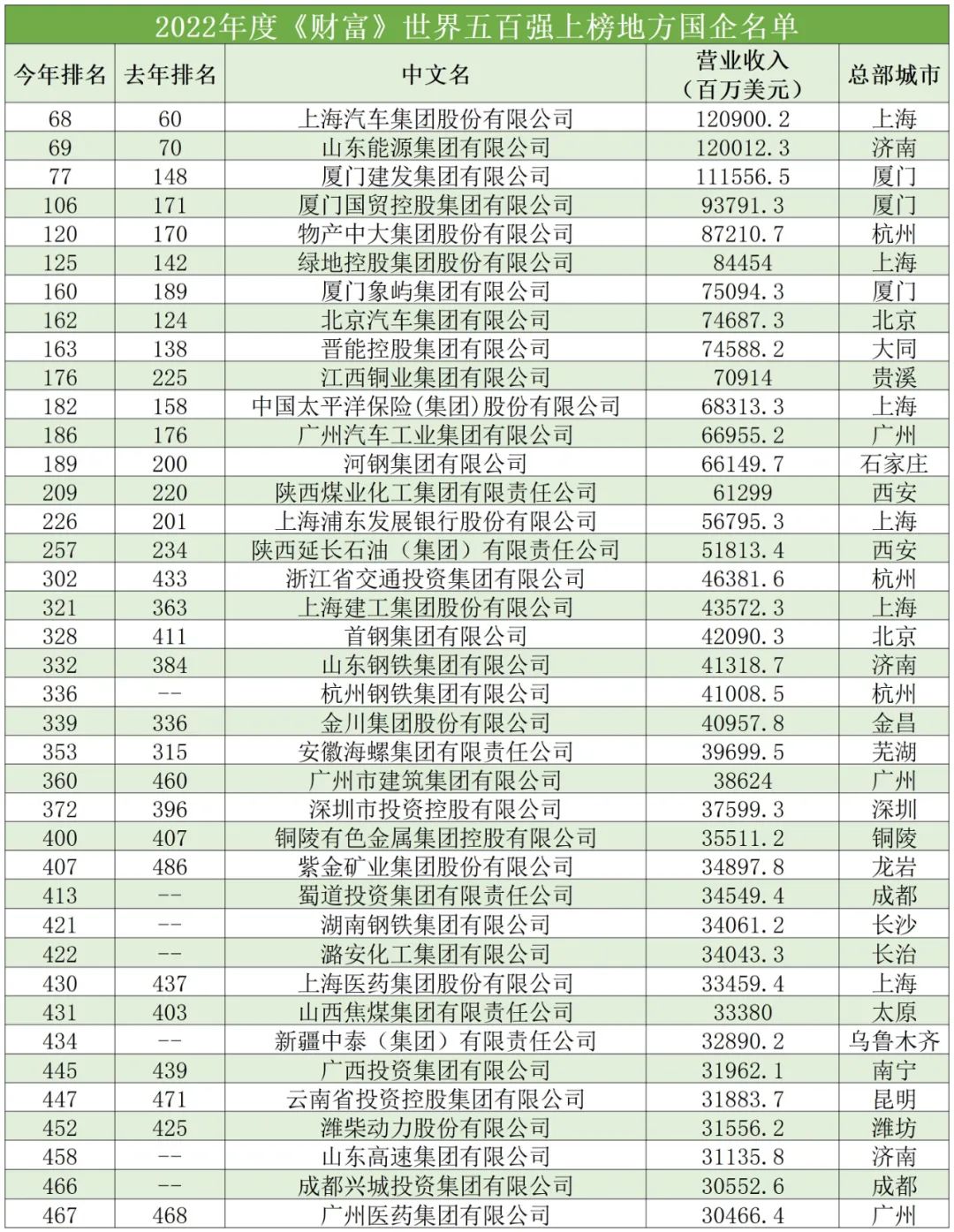 地方能源電力類國企中,山東能源集團排名69位,晉能控股163位,陜西煤業(yè)化工209位。地方國企銷售額排名如下圖。