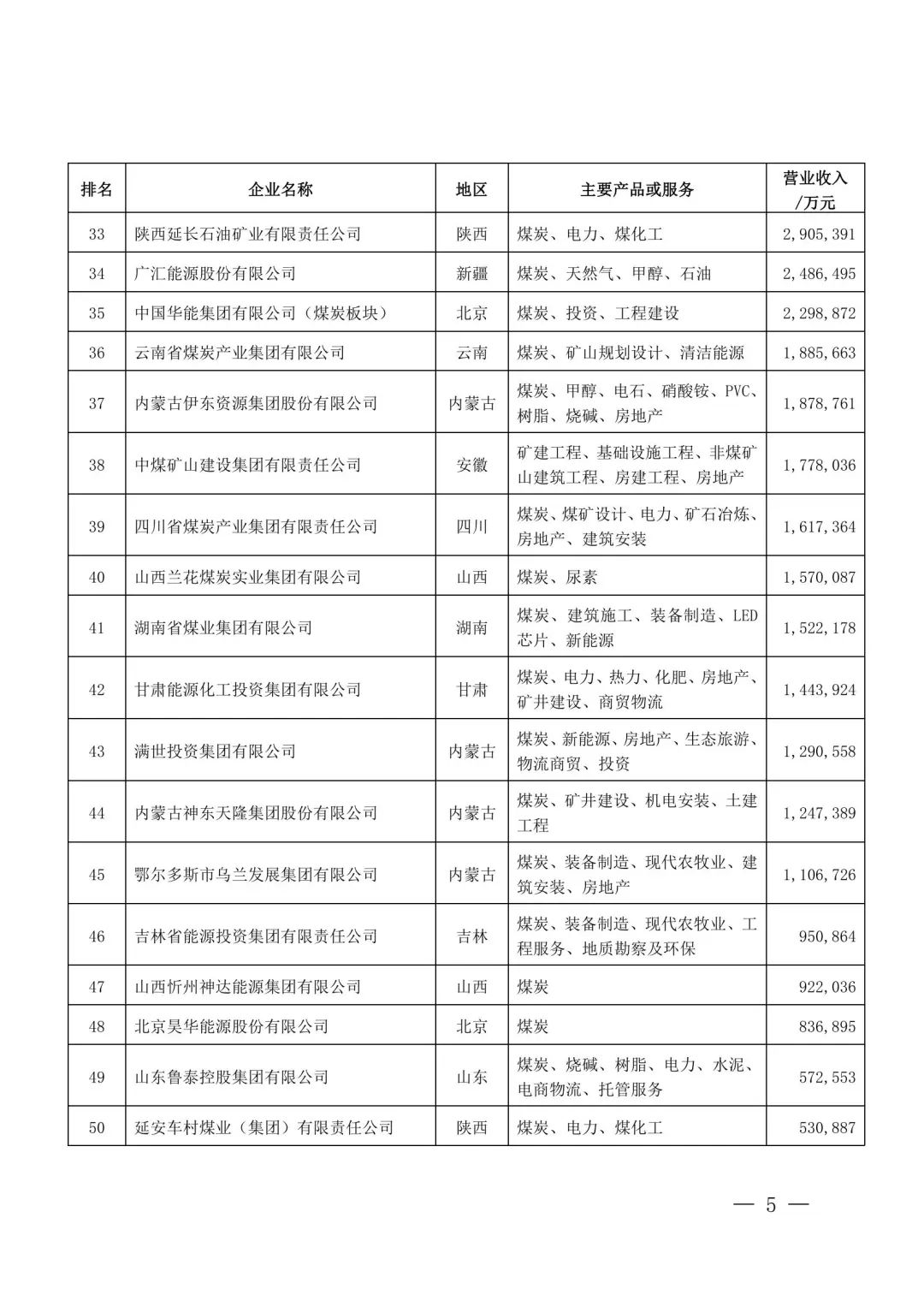 8月5日,中國煤炭工業(yè)協(xié)會(huì)發(fā)布2022中國煤炭企業(yè)50強(qiáng)和煤炭產(chǎn)量千萬噸以上企業(yè)名單。排名先后依據(jù)營業(yè)收入而非煤炭產(chǎn)量。
