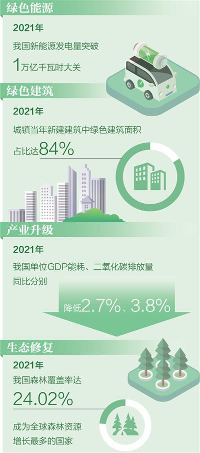 推進(jìn)建筑、交通等領(lǐng)域低碳轉(zhuǎn)型。積極發(fā)展綠色建筑,推進(jìn)既有建筑綠色低碳改造,2021年全國城鎮(zhèn)新建綠色建筑面積達(dá)到20多億平方米。加大力度推廣節(jié)能低碳交通工具,新能源汽車產(chǎn)銷量連續(xù)7年位居世界第一,保有量占全球一半。