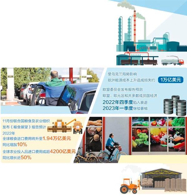 身處風(fēng)暴中心的歐洲,毫無疑問是這場危機(jī)的最大埋單者。美媒報道指出,受烏克蘭局勢影響,歐洲能源成本上升造成的損失已達(dá)約1萬億美元。能源危機(jī)帶來的種種負(fù)面影響:歐元貶值、通脹加劇、中產(chǎn)階層陷入貧困、企業(yè)背負(fù)巨額虧損……讓歐洲苦不堪言。歐盟委員會近日發(fā)布的2022年秋季經(jīng)濟(jì)預(yù)測報告稱,歐盟、歐元區(qū)和大多數(shù)成員國經(jīng)濟(jì)預(yù)計在2022年四季度陷入衰退,2023年一季度經(jīng)濟(jì)活動將繼續(xù)萎縮。