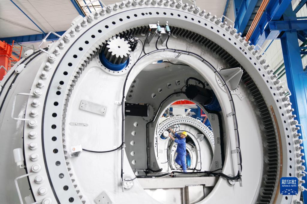 在黑龍江省齊齊哈爾市中國一重集團有限公司風電裝備生產制造廠生產車間,工人進行生產作業(yè)(2021年7月1日攝)。