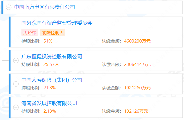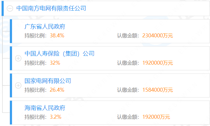 據(jù)媒體2021年12月報(bào)道,完善南方電網(wǎng)股權(quán)結(jié)構(gòu)推動(dòng)高質(zhì)量發(fā)展專(zhuān)題會(huì)議在深圳召開(kāi),南方電網(wǎng)股權(quán)結(jié)構(gòu)調(diào)整為國(guó)務(wù)院國(guó)資委持股51%、廣東省人民政府持股25.57%、中國(guó)人壽保險(xiǎn)(集團(tuán))公司持股21.3%、海南省人民政府持股2.13%。