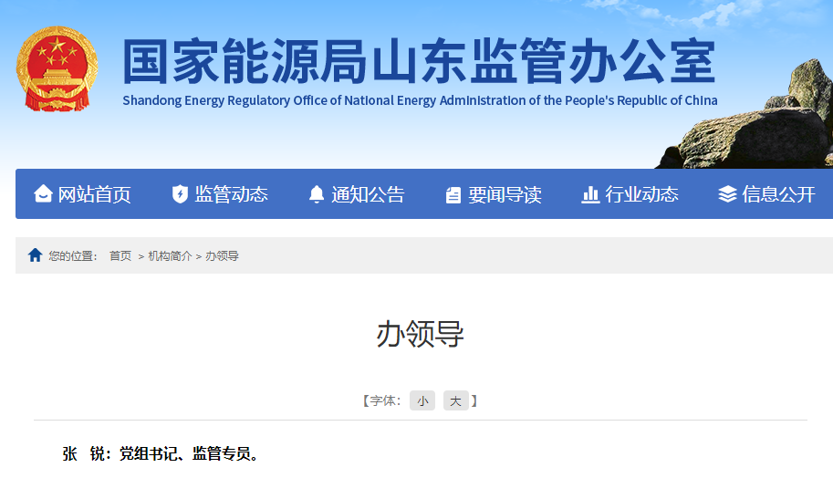國(guó)家能源局山東監(jiān)管辦公室官網(wǎng)顯示,張銳已任國(guó)家能源局山東監(jiān)管辦公室黨組書記、監(jiān)管專員。