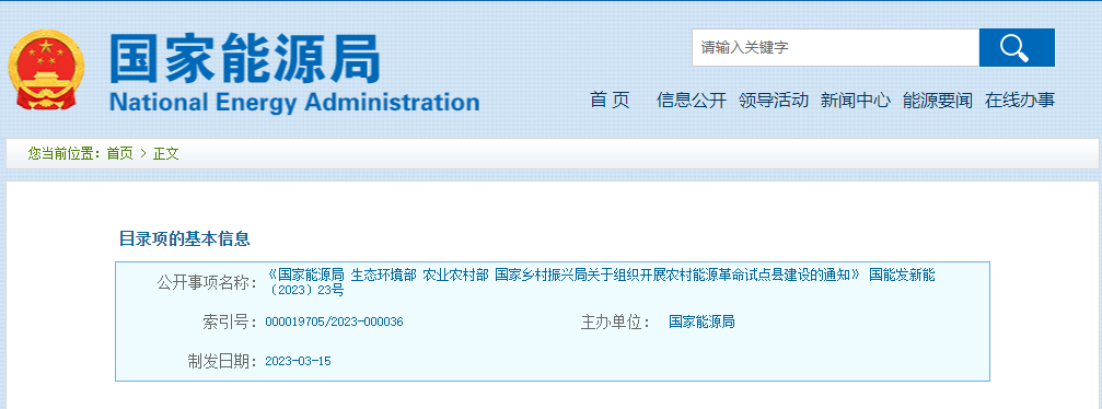 《國家能源局 生態(tài)環(huán)境部 農(nóng)業(yè)農(nóng)村部 國家鄉(xiāng)村振興局關(guān)于組織開展農(nóng)村能源革命試點縣建設(shè)的通知》