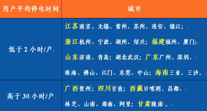 31個(gè)省級(jí)行政區(qū)中,用戶平均停電時(shí)間同比降幅超過10%的有24個(gè),前三位的新疆、北京、安徽減少幅度超過45%。內(nèi)蒙古、黑龍江的平均供電可靠率同比下降。