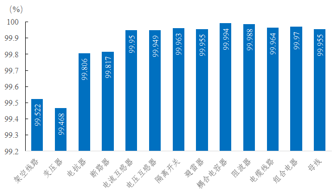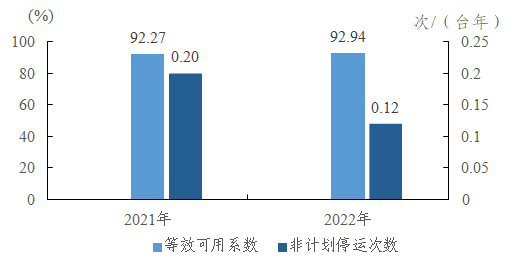 2022年輸變電設(shè)施運(yùn)行可靠性指標(biāo)總體位置在較高水平,十三類輸變電設(shè)施的可用系數(shù)保持在99.45%以上,強(qiáng)迫停運(yùn)率維持在0.3次/百千米(臺(tái)、套、段)年以下。