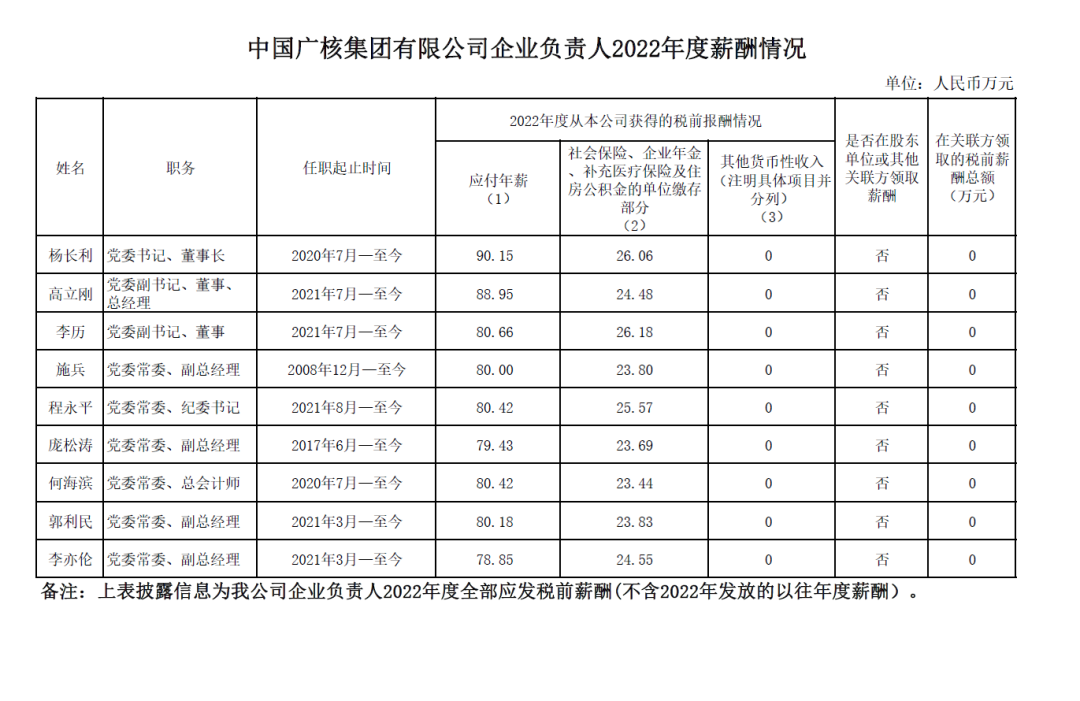 近日,南方電網(wǎng)、中國華能、大唐集團(tuán)、國家電投、中廣核、三峽集團(tuán)、中核集團(tuán)等電力央企披露負(fù)責(zé)人2022年度薪酬情況。(2021年度各大電力央企薪酬請查看下方鏈接)