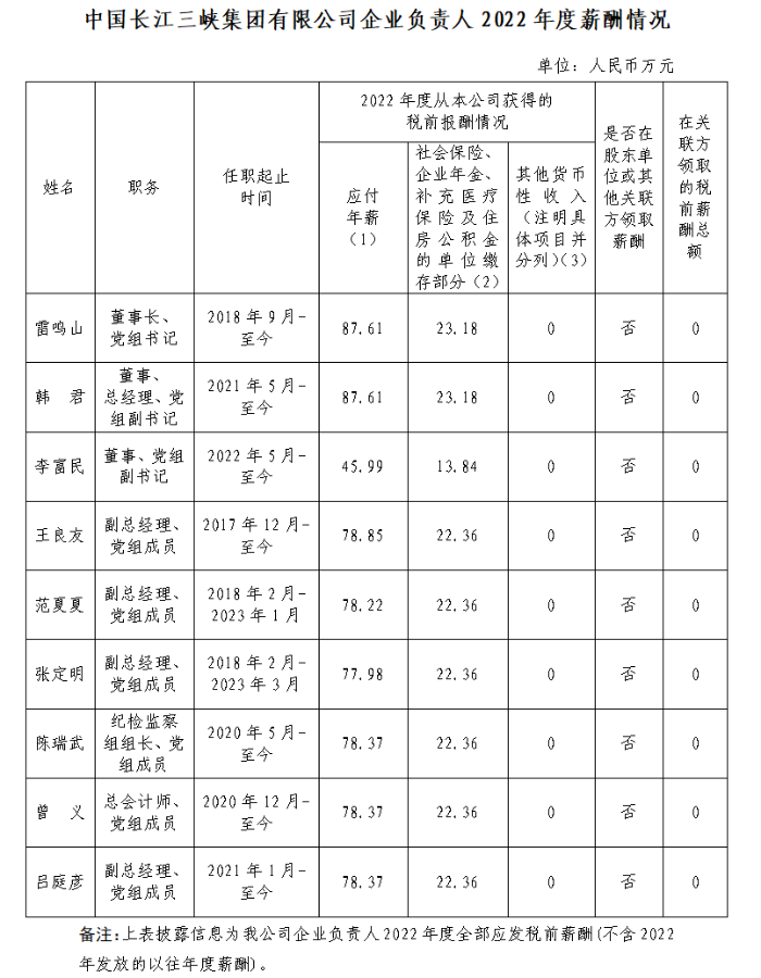 備注:上表披露信息為我公司企業(yè)負(fù)責(zé)人2022年度全部應(yīng)發(fā)稅前薪酬(不含2022年發(fā)放的以往年度薪酬)。