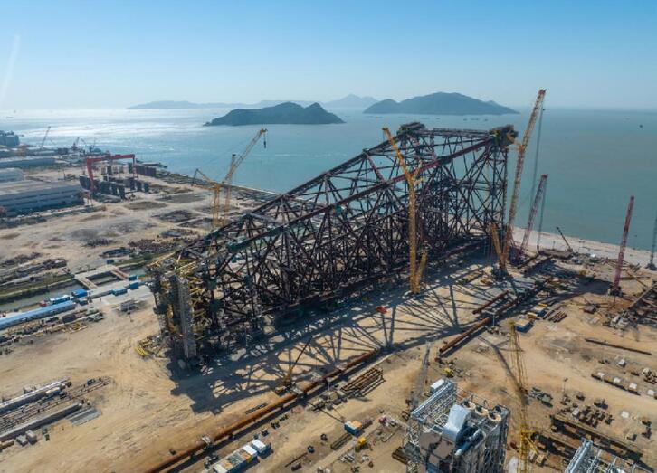 我國(guó)自主設(shè)計(jì)建造的深水導(dǎo)管架“?;?hào)”建設(shè)完工。“?;?hào)”導(dǎo)管架總高338米,總重達(dá)3.7萬噸,均刷新亞洲紀(jì)錄,將與“海洋石油122”共同服役于我國(guó)首個(gè)深水油田流花11-1/4-1油田,標(biāo)志我國(guó)海洋深水油氣裝備設(shè)計(jì)建造能力實(shí)現(xiàn)穩(wěn)步提升。