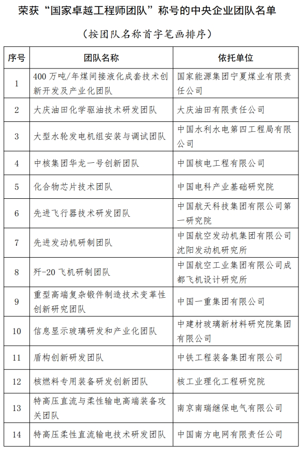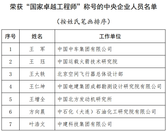 中央企業(yè)共有王軍等29名工程科技人才榮獲“國(guó)家卓越工程師”稱號(hào),400萬(wàn)噸/年煤間接液化成套技術(shù)創(chuàng)新開(kāi)發(fā)及產(chǎn)業(yè)化團(tuán)隊(duì)等20個(gè)團(tuán)隊(duì)榮獲“國(guó)家卓越工程師團(tuán)隊(duì)”稱號(hào)。