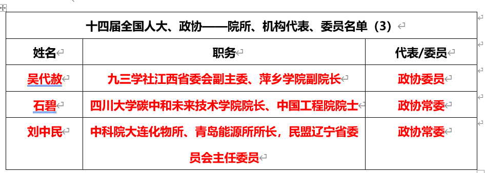(3)劉中民 中科院大連化物所、青島能源所所長,民盟遼寧省委員會主任委員 政協(xié)常委