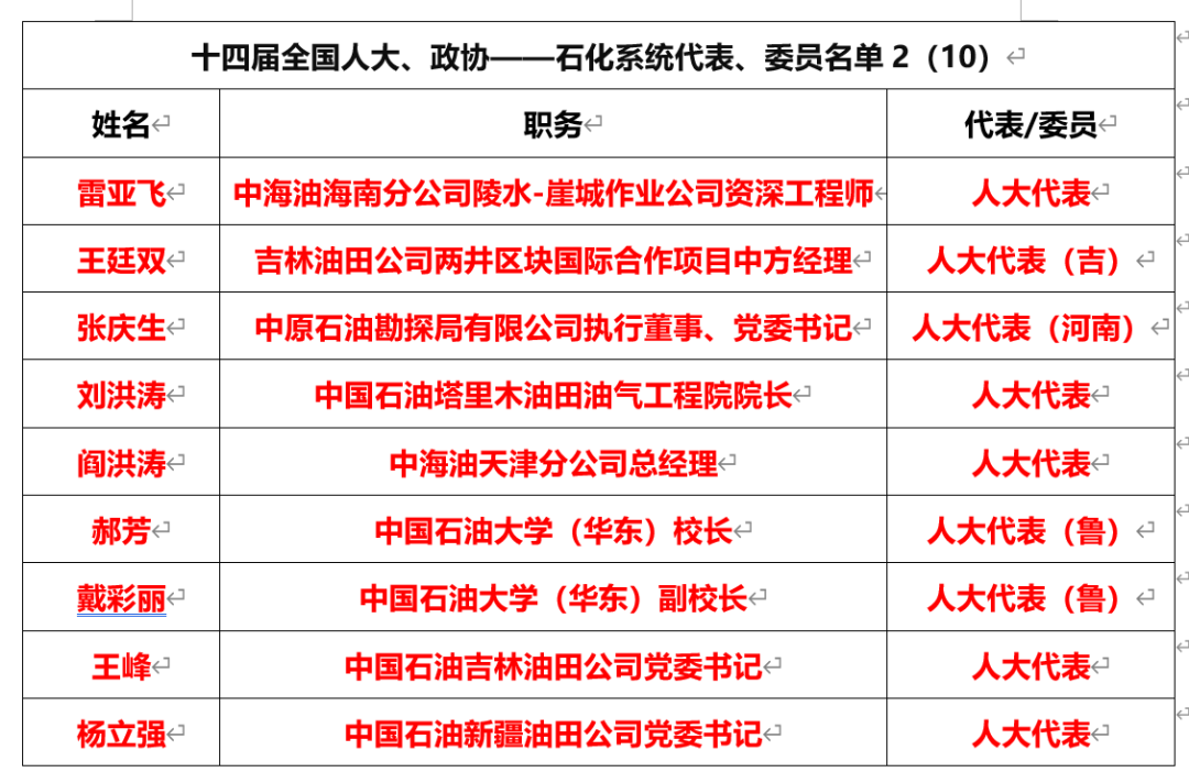 (1)汪東進 中國海油董事長、黨組書記(政協(xié)委員)